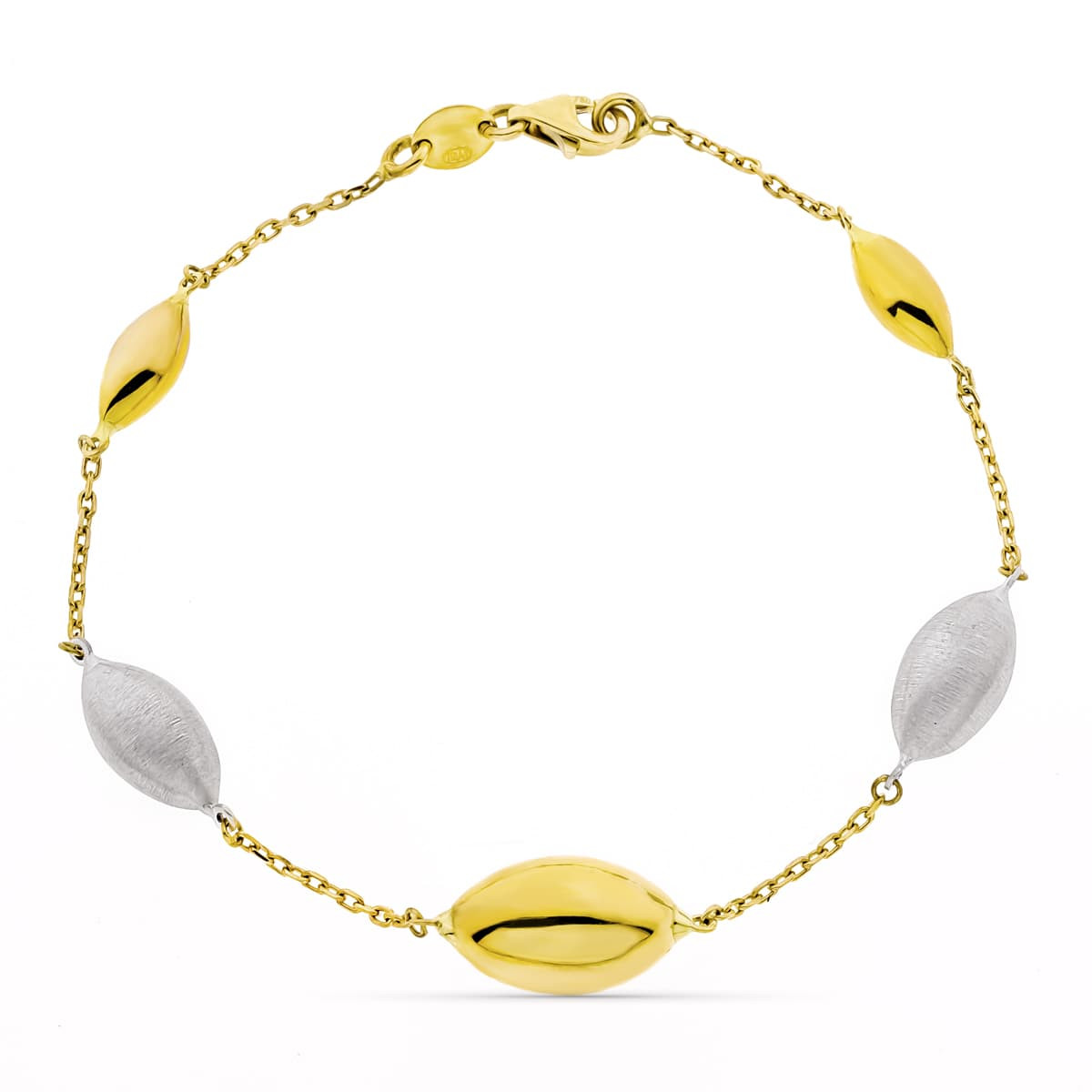 18K PULSERA ORO BICOLOR ADORNOS OVAL. ANCHO 9 MM LARGO 20CM