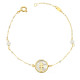 18K PULSERA ORO AMARILLO NACAR CON CRUZ CARAVACA 12 MM Y BOLAS JADE 4 MM CADENA 18 2.5 CM