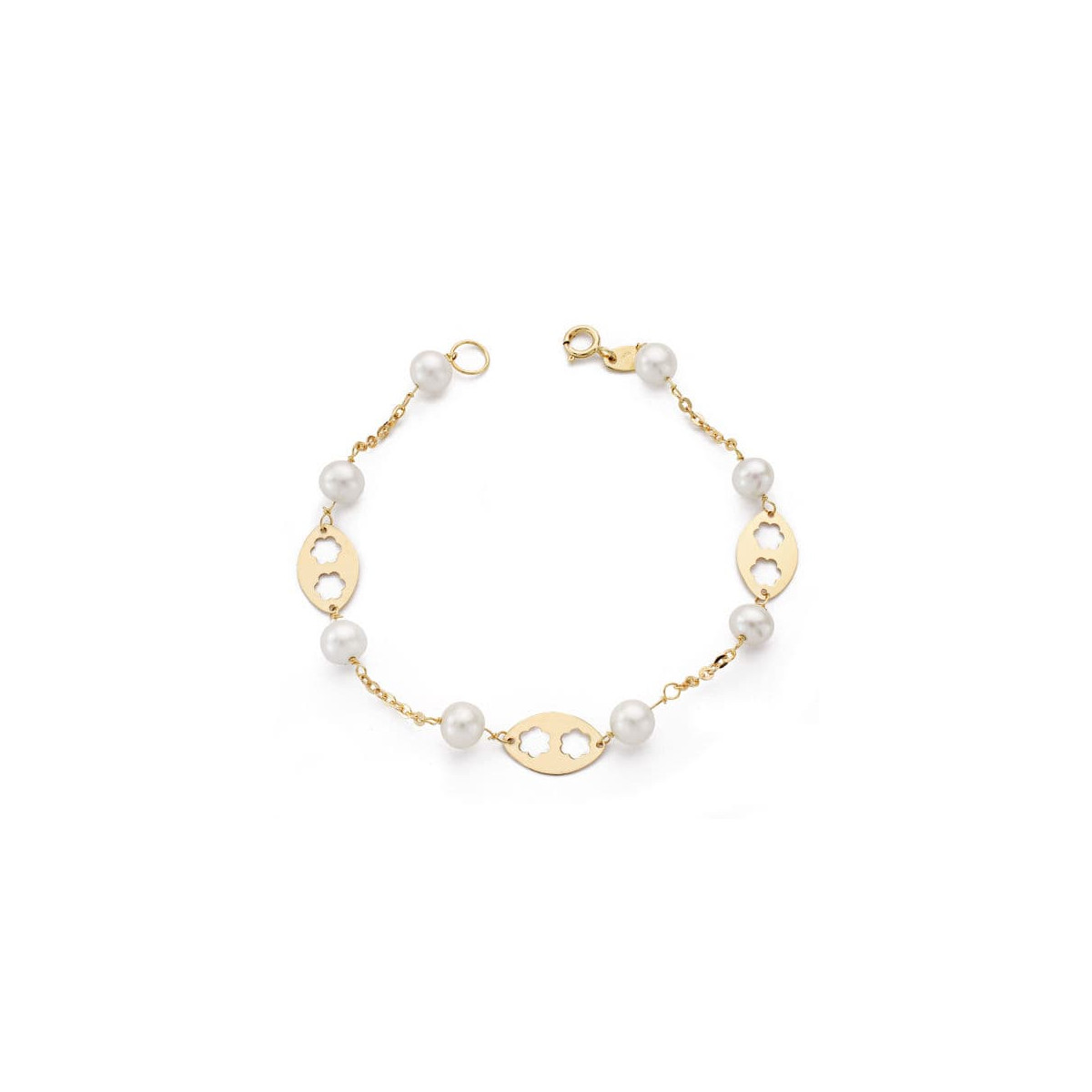 9K PULSERA ORO AMARILLO PERLA Y MOTIVOS. 18CM