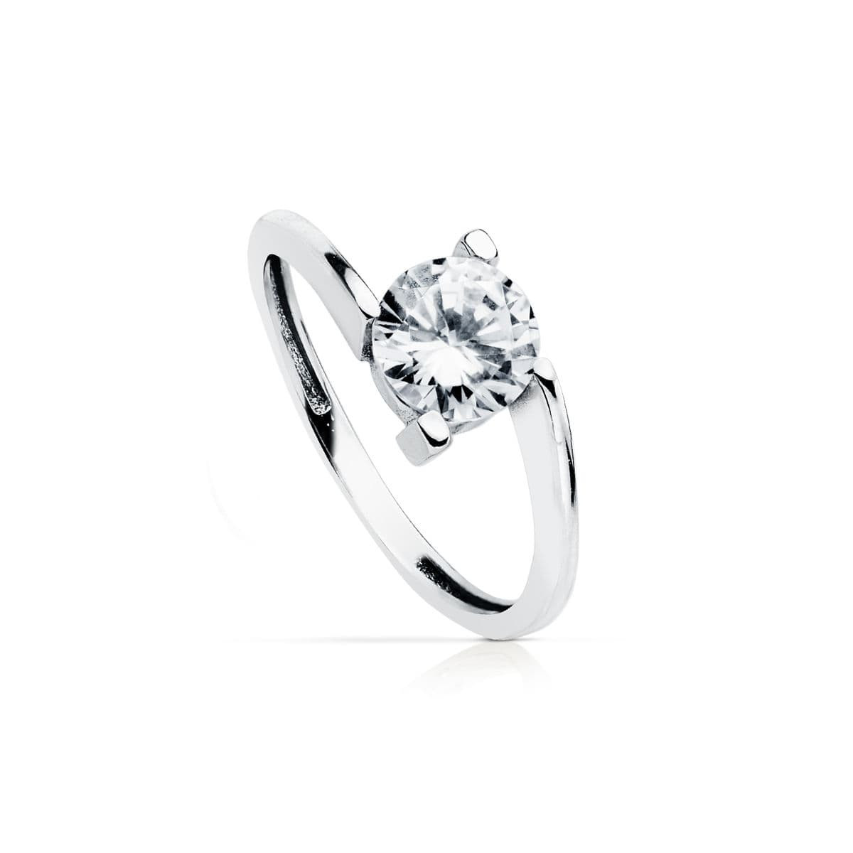 9K SOLITARIO ORO BLANCO CRUZADO CON CIRCONITA DE 7 MM